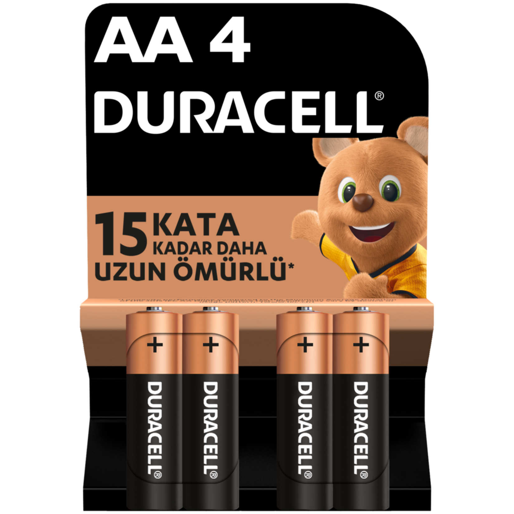 Duracell AA kalem pil, kumanda, oyuncak, el feneri ve diğer günlük elektronik cihazlar için uzun ömürlü ve güvenilir enerji sağlar.