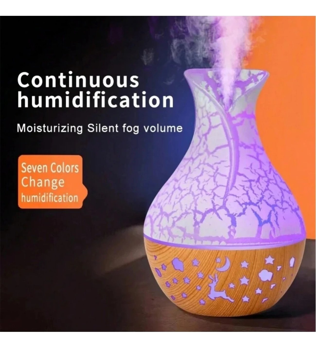 Fioplus FP-HDR09 Vazo Tasarımlı Ahşap Aromaterapi Hava Nemlendirici — 7 Renk LED Işıklı
