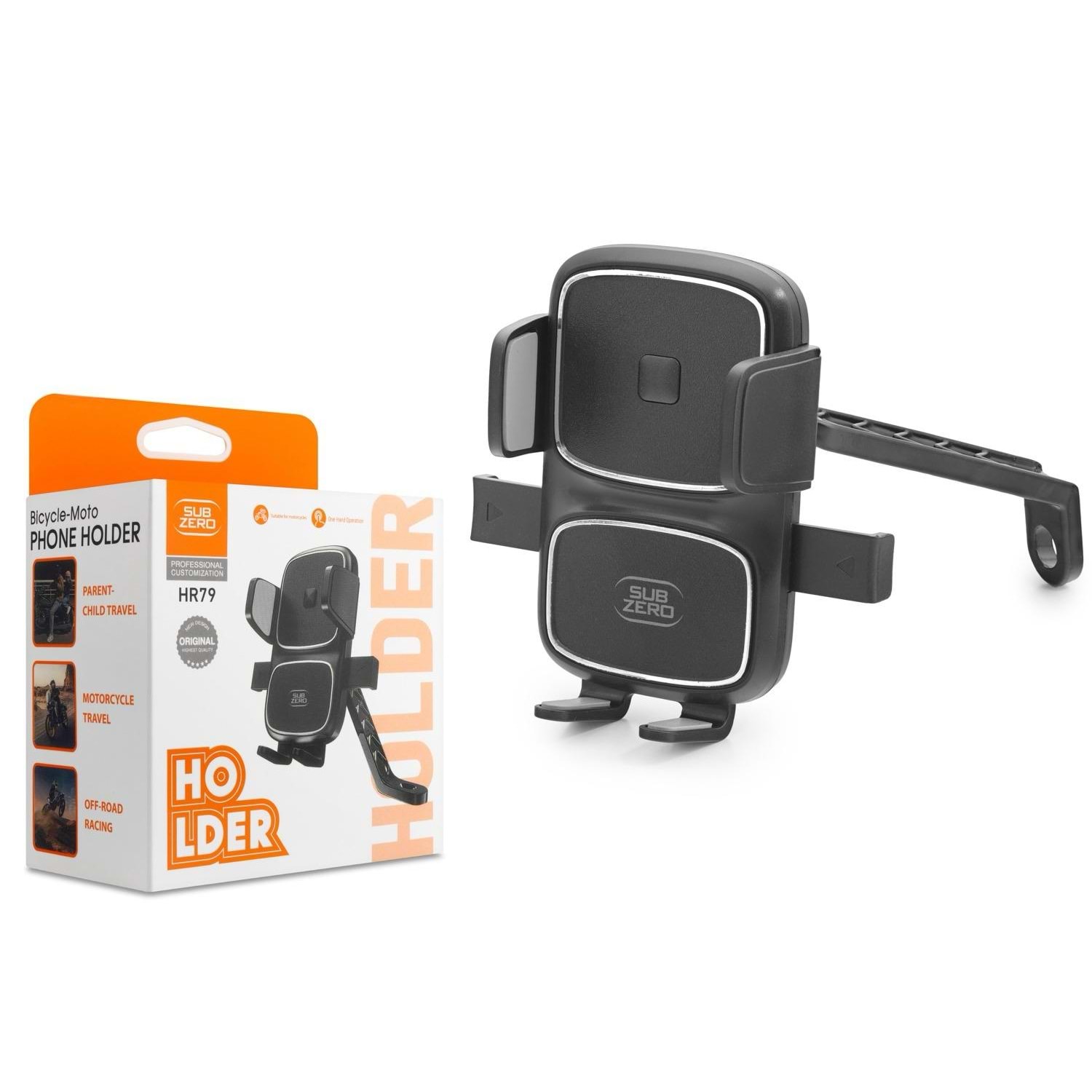 Subzero HR79, motosiklet ve scooter gidonlarına sağlam kelepçe ile bağlanan, 360° dönebilen ve titreşim önleyici pedlere sahip premium bir telefon tutucudur. Navigasyon, müzik ve çağrıları sürüş sırasında güvenle yönetmenizi sağlar.