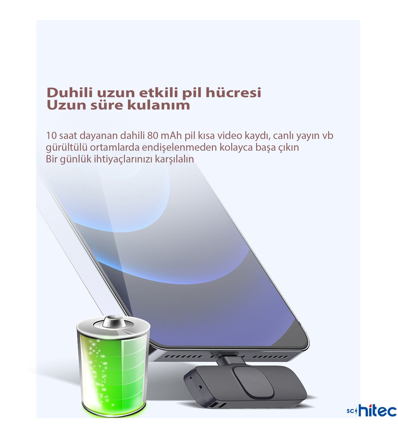 - Dahili Akü / Pil Desteği: Tek şarjla uzun çalışma süresi.