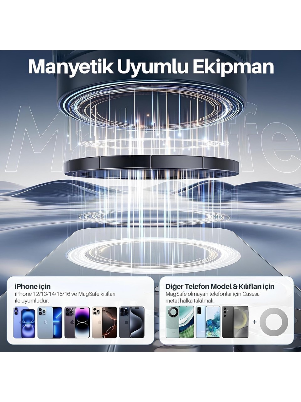 - 🧲 Güçlü mıknatıs ile telefon sabitleme