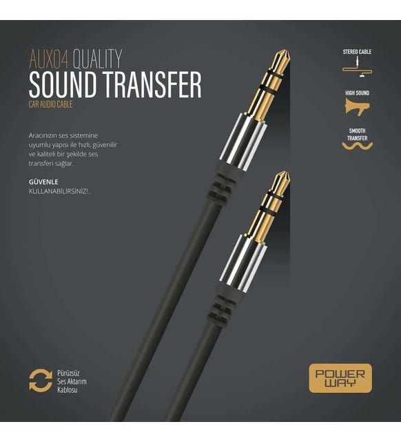 🔊 Powerway AX04 – 3,5 mm AUX Ses Kablosu