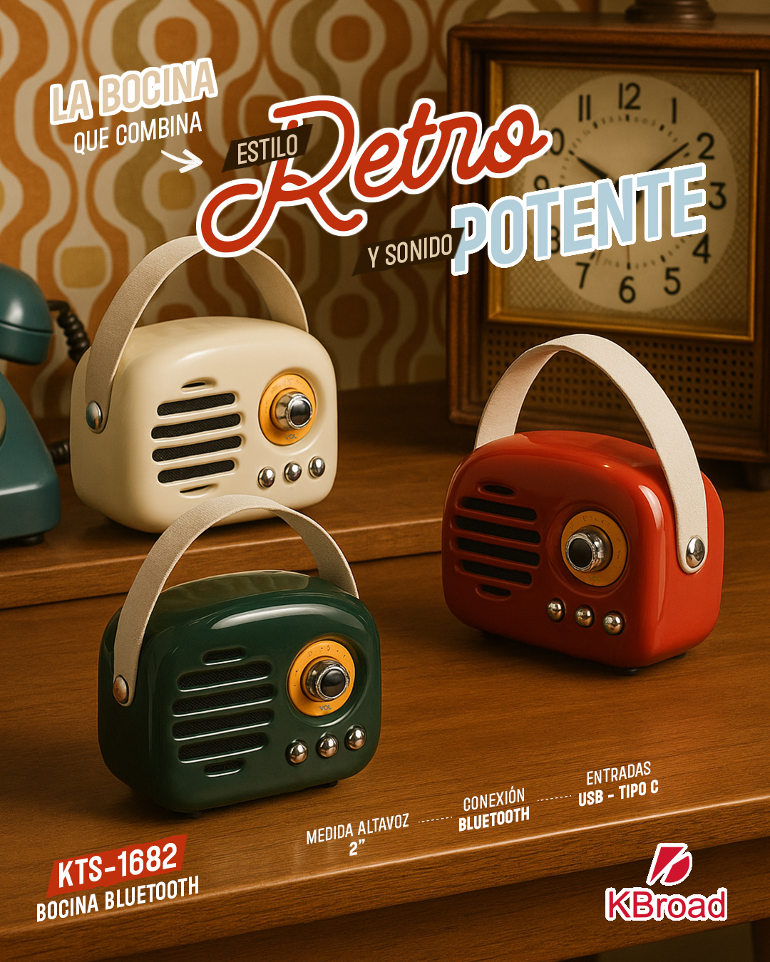 KTS1682 modeli, küçük boyutuna rağmen güçlü özellikleriyle dikkat çeker. Retro tasarımla süslenmiş kasası, FM radyo yayınları, Bluetooth desteği ve USB / TF kart girişi ile hem dekoratif hem fonksiyonel bir radyo deneyimi sunar.